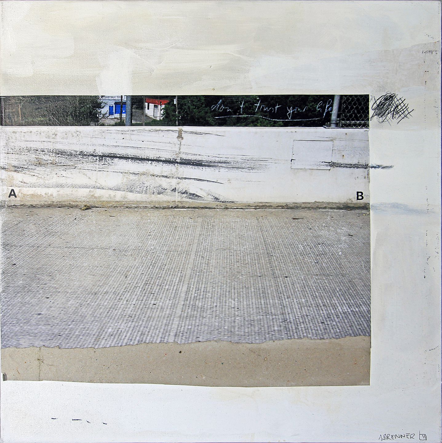 Od praznoga platna, Wolfgang Brenner dodavanjem sloja na sloj, konstruira i komponira pomno promišljene ideje. Njegovi radovi predstavljaju dijelove kompleksnosti onoga što nas okružuje, gotovo djeluju kao brze projekcije fragmenata situacija poludjeloga svijeta. „Bombardirani“ smo informacijama, ali ne nasilnički, nego u ravnoteži realizma i poetike, ozbiljnosti i zabave, značajnog i banalnog. Često dodajući izjave, poslovice, jasne rečenice, riječi ili slova te gradacijom njihovih veličina, svojim radovima postavlja više pitanja nego što njima odgovara. Brennerovi kolaži, svojim dinamičnim karakterom ostavljaju prostor promatraču za doživljavanje, eksperimentiranje mislima i propitivanje osobnog shvaćanja okoline u kojoj se nalazimo.